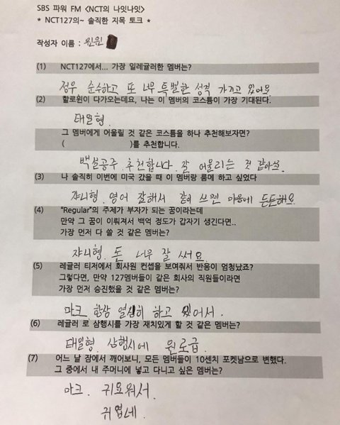 내기준 유타랑 텐 글씨 반듯하고 예쁘게 잘쓰는듯!