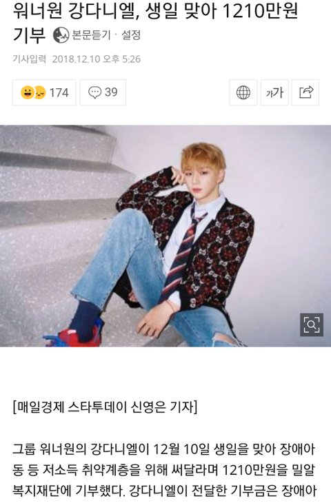 다니엘이 직접 기부했대ㅜㅜ