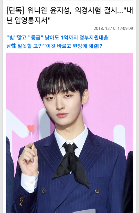[단독] 워너원 윤지성, 의경 시험 결시.."내년 입영통지서 예정