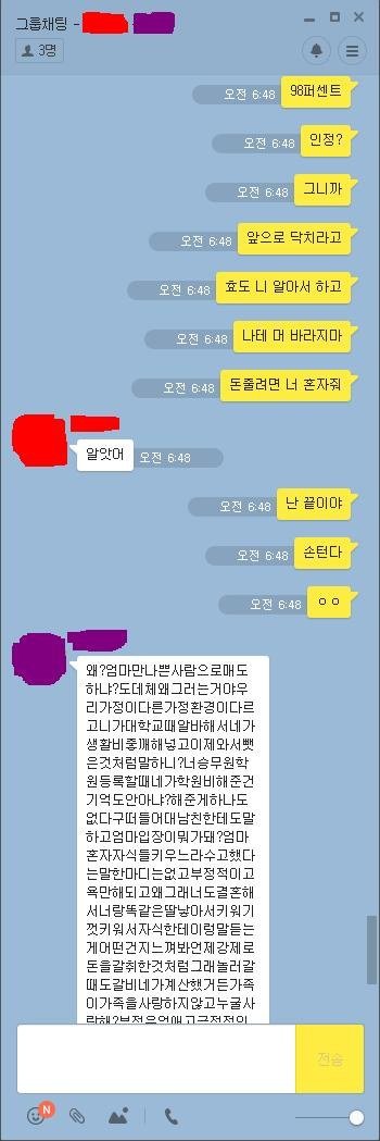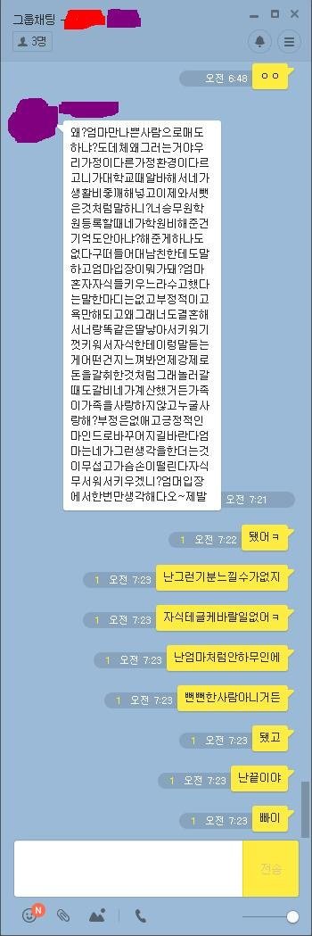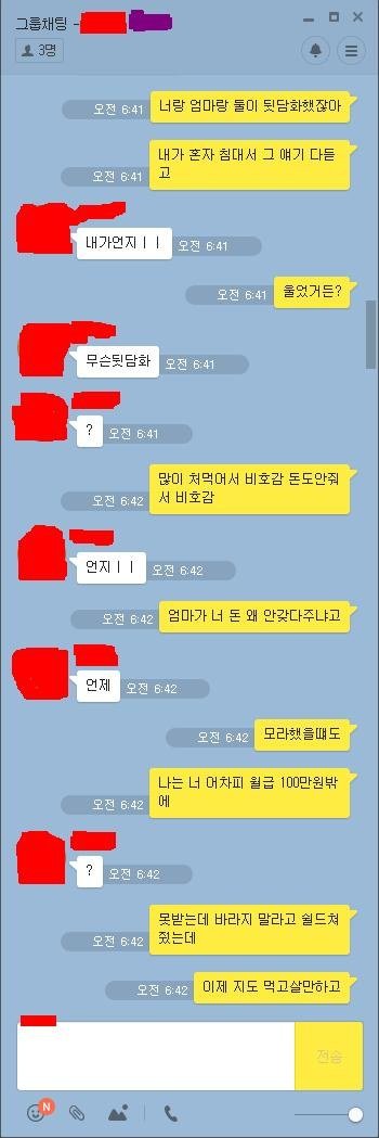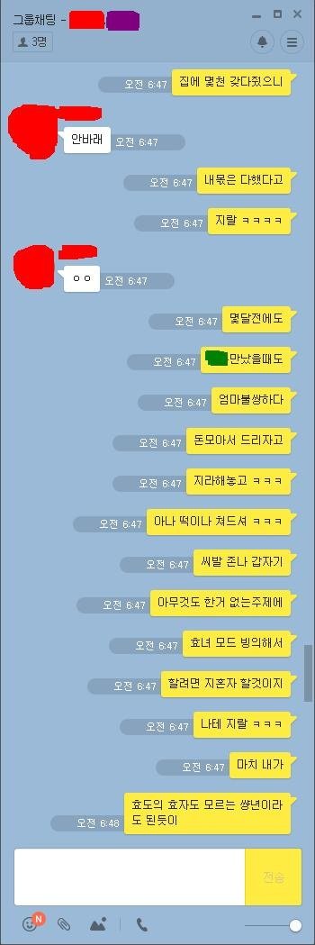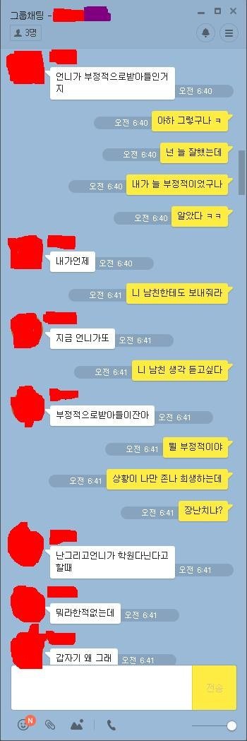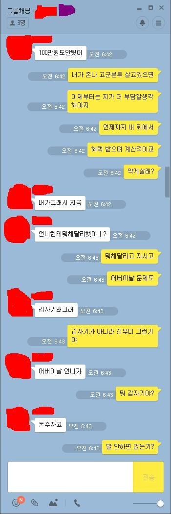 아니몇번을 읽는데 쓴이 개이상해 ㄹㅇ 지가 자발적으로다한거네 누가강요한것도아니고 지혼자 효녀하겟다고 다가져다바쳐놓고 왜그걸 동생탓해댐 동생이정상인에 똑똑한거지 누가지보고월급거의다 가져다바치라고한것고아닌것같구만 동생은 적금열심히한거고...왜저런대 글구 단톡에 엄마도잇는데 신발거리면서 욕질하는것도 노답;;; 계속동생한테 동생남친한테 보내라고 해대는것도 제정상으로안보임