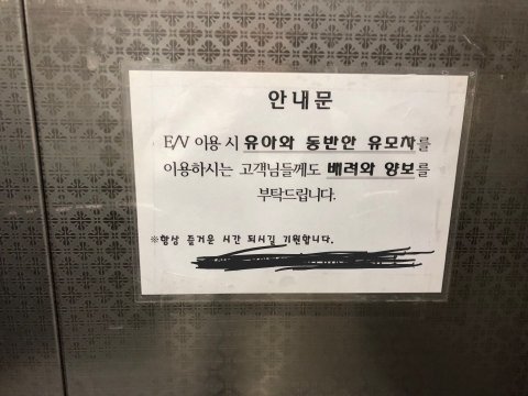진짜 벙지고 왜 애 유모차 태우고 엘레베이터 타는걸로