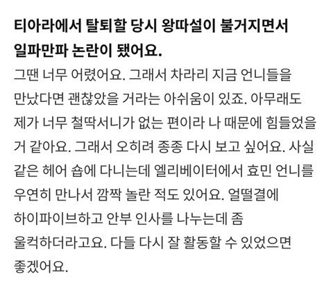 뭐래 나 그때 티아라 진짜 좋아했어서 기억해 화영이랑 걔네 언니랑 내 반쪽 그러면서 피코 ㅈㄴ 하고 화영 다리다쳤다고 리허설인가?할때 네일받으러가고 화영 잘한거 하나도 없으니까 제발 쉴드치지마 ㅈ같아