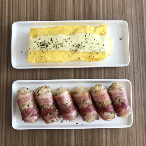 치즈계란말이랑 베이컨말이를 만들었어요!