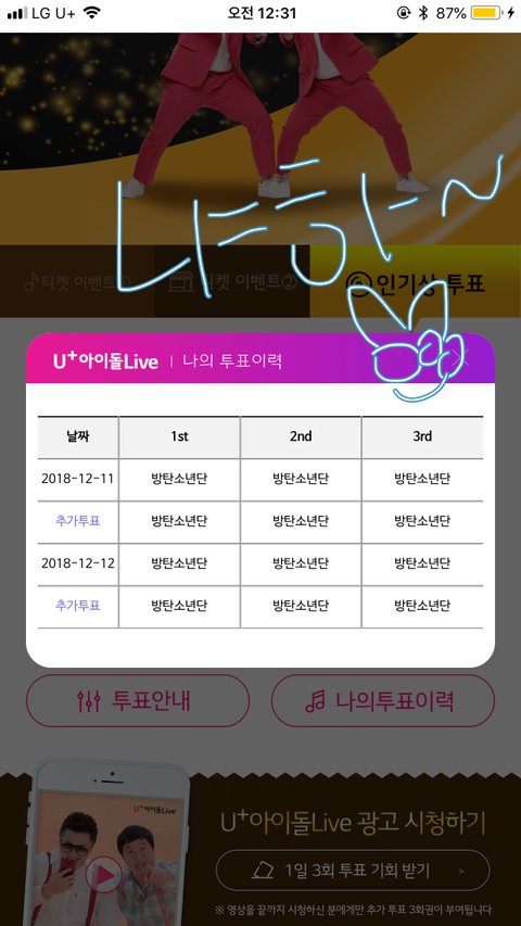 나 투표 하는거 너무 늦게 알아서 어제부터 하는중인데 왜 이제 알았을까ㅠㅠㅠ 애들이 상받으면 그렇게 좋아하는거 알면서ㅠㅠㅠ 반성중이야 진짜로ㅠㅠㅠㅠ