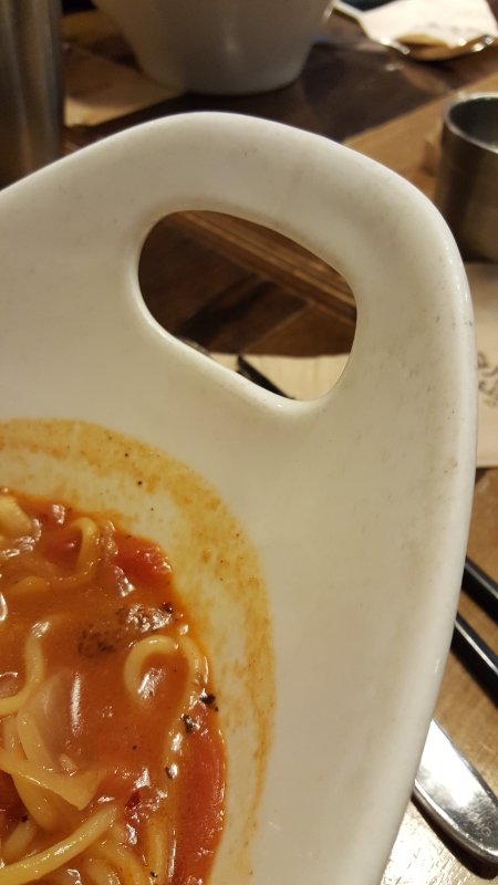그렇게 기분이 상한채로 음식이 나왔고 저희는 그릇이 너무 더러워 놀랐습니다. 하지만 그릇얘기를 해도 말이 통하지 않을 것을 알기 때문에 사진을 찍고 조금 먹었습니다.