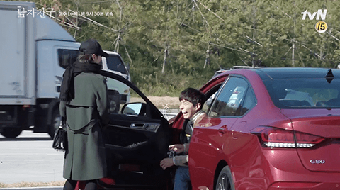 대표님 대신 진혁이가 운전하기 위해 운전석에 먼저 타고