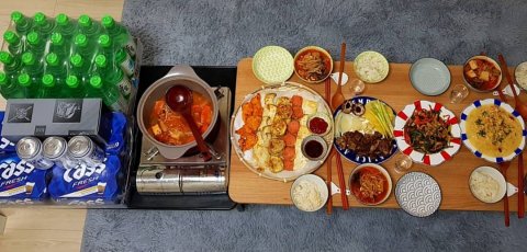 아래는 친구들이랑 술상&혼술 사진이에요. 술이 빠지지않네요 ㅋㅋ