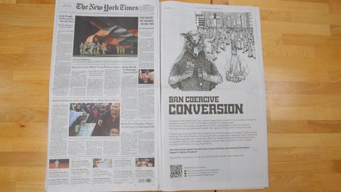 이 광고는 강제개종 근절을 바라는 미국 시민들이 자발적으로 나서 모금을 거쳐 게재해 화제가 되고 있다.