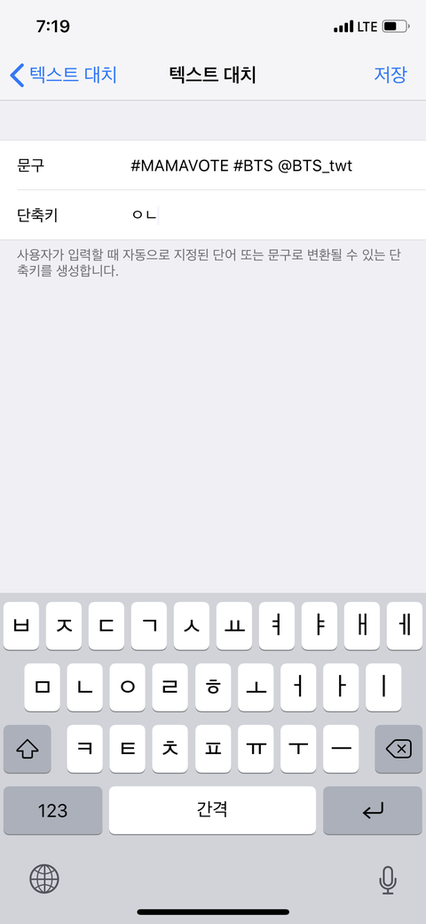 설정 키보드 텍스트대치 가서