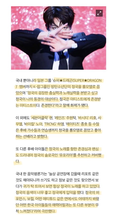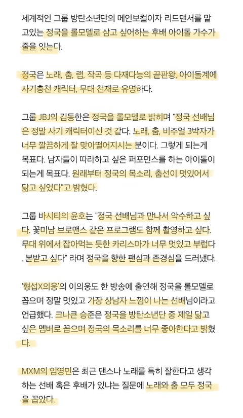 방탄 정국 후배들이 롤모델로 많이 꼽네