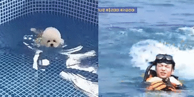 왼쪽 멈멍이는 개헤엄 오른쪽 멈무는 떠내려가는 수준이긴한데....! 둘다 귀엽ㅋㅋㅋㅋㅋㅋㅋㅋ