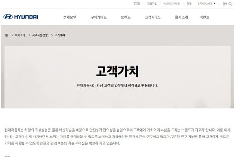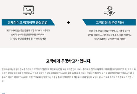 저 위에 사진속에 있는 글은 현대자동차 홈페이지 회사소개란에 있는 글 입니다.