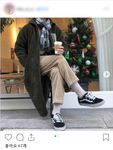 롱코트 입었을 때도 이렇게 캐주얼한 양말이랑 매치해서 부담스럽지 않게 코디할 수 있어!