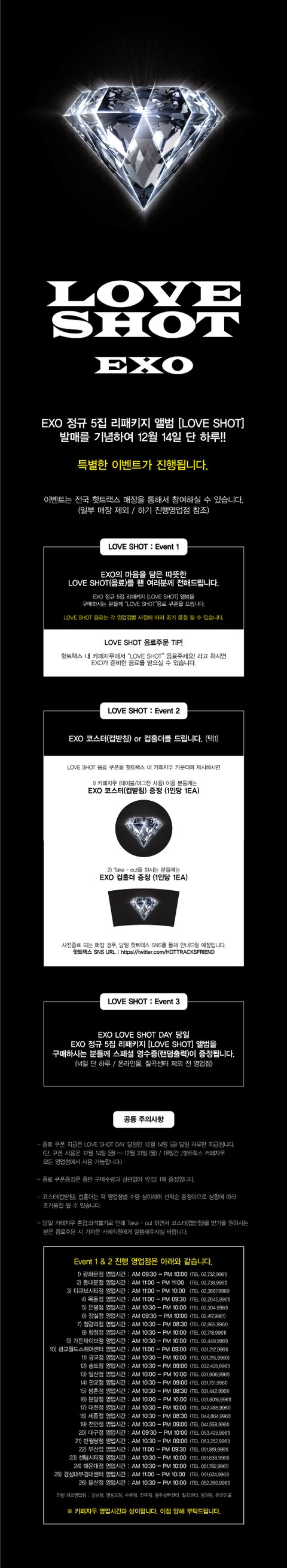 핫트랙스 오프매장에서 엑소 이번 앨범 산 사람들한테 핫트랙스 옆에 있는 카페에서 엑소가 준비한 음료수 다 받는대 ㅇㅇ 조카 좋다 엑소 덕질 행복해