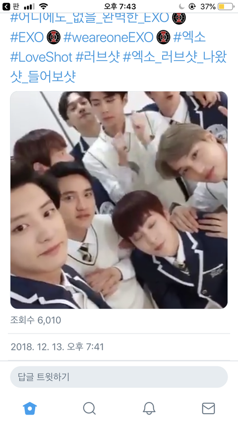 나 러브샷 듣고 미쳐서 엑소 트윝로 찾아보는데