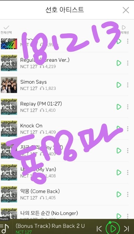 음원발매일부터 스밍한 사이먼세즈 포함 수록곡 누적횟수