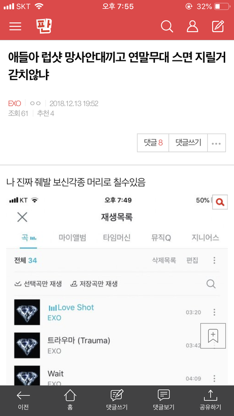 보고 이거 아니야 love shot, wait, 트라우마 제외하고 다른건 템포 앨범으로 넣어야 함 유니버스는 유니버스 앨범이고