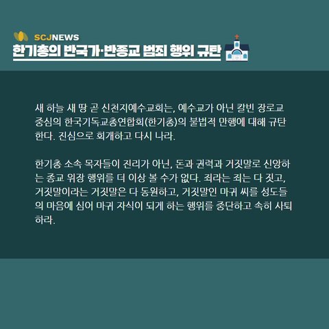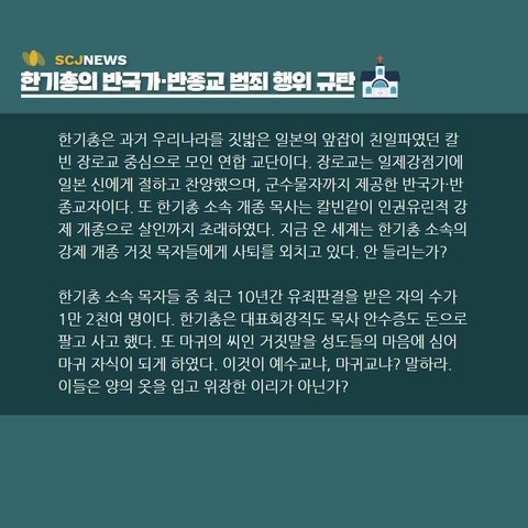 한기총의 반국가 반종교 범죄행위를 규탄합니다