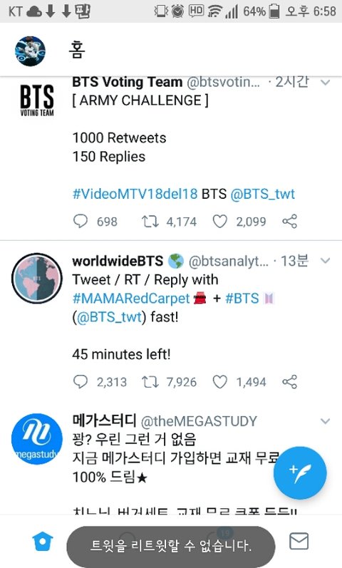 트윗이랑 리트윗 엄청 하고 있었는데 갑자기 안 된다 왜 그런지 아는 이삐ㅜㅜㅜ