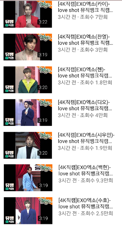 시우민은 작년까진 그래도 유튭조회수 중간은 했던것 같은데 올해는 확 떨어졌네