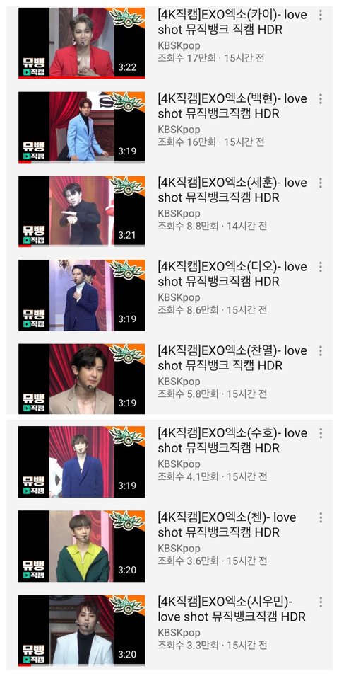 카이 백현 세훈 디오 찬열 수호 첸 시우민