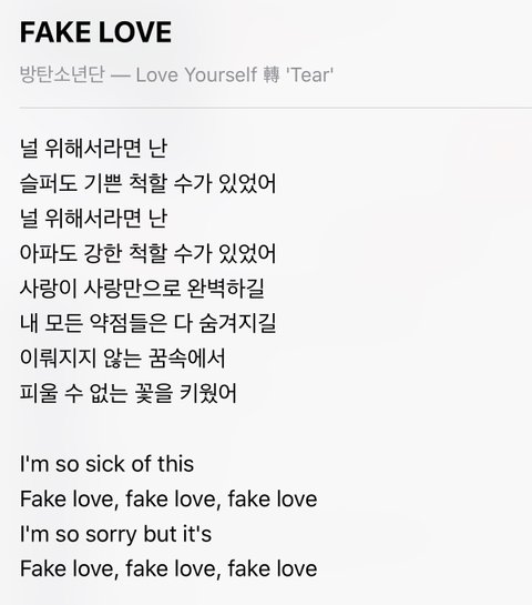 난 안 그래도 fake love가 너무 슬픈노래라고 생각했는데