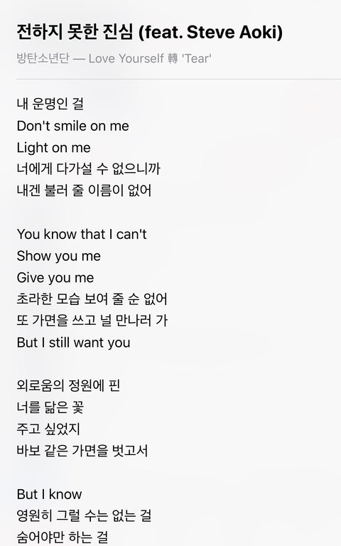 정말 이제와서야 이 가사들이 절절한 진심이란걸 깨닫다니ㅠㅠㅠㅠㅠ