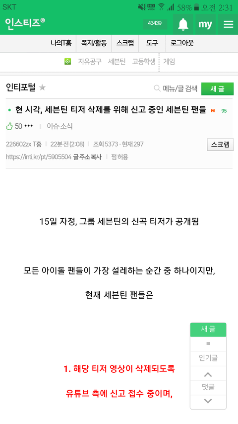 현 시각, 세븐틴 티저 삭제를 위해 신고 중인 세븐틴 팬들