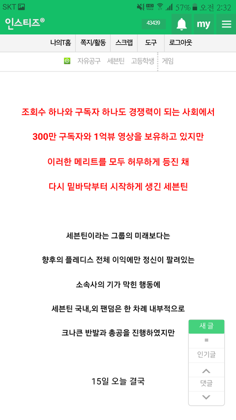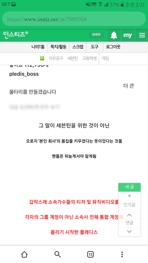 총공하다가 진짜 공감되는 말 봐서 가져와봄.. 팬층도 어리니까 애들이 길게 멀리보질 못하고 당장 보이는걸로만 화내는걸로 볼 거 같은데, 우린 우리애들 잘되는걸 우선으로 움직이는 사람들이야. 불편해도 애들 더 유명해질 가능성 있으면 납득했겠지만 오죽 잘될 가망이 없어보였으면... 이게 ㄹㅇ인 거 같음... 이건 셉틴은 물론이고 회사가 통합을 통해 밀어주려는 연생 내지는 차기그룹에게도 전혀 도움이 안됨