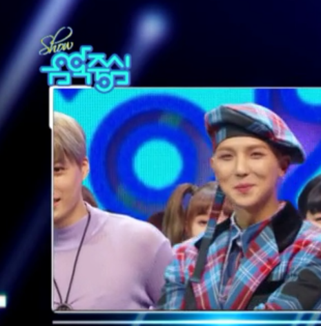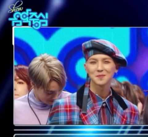 1위발표전에 모든 가수들 나왔는데 송민호뒤에 카이 있음