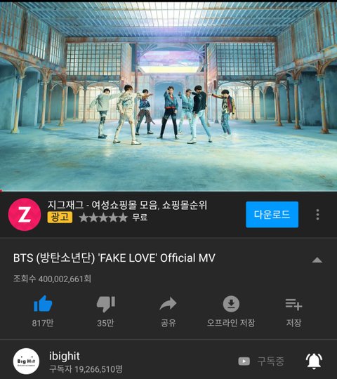 페이크 러브 4억 ㅊㅊ