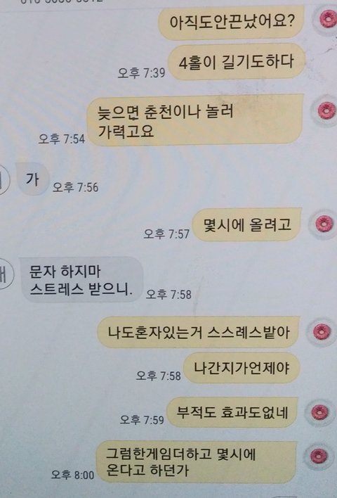 방탈 죄송합니다 문자내용 판단하고 누가 더 잘못한건지 알려주세요 노란색이 제가 보낸거고 회색이 상대방이 보낸겁니다. 이 문자내용때문에 제가 집착녀라는 소리를 듣고 있습니다.