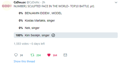 지금 인형 디자이너들 투표 '세계 조각 미남 1위 등극'