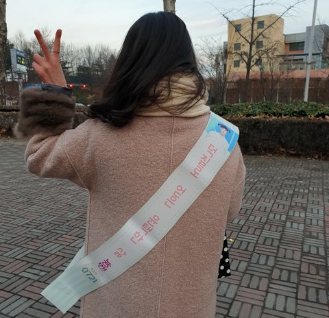 8. 나 아는 럽 아론 담요 두르고 다니니까 러브들이 굿즈 찔러주고 갔다고 하드라고. 열라 이쁜 아론 뱃지였어! 내가 넘 촉박히가서 별로 굿즈나눔은 못받았어! ㅠㅠ