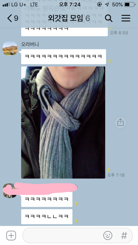 보통 알면 다시 안하잖아요 그 날 많이 추웠는지 집까지 또 하고 들어오더라고요 ㅋㅋㅋㅋㅋㅋㅋㅋㅋㅋㅋㅋㅋㅋㅋ 여튼 마지막으로 오빠 목도리 사주고 저 사건을 단톡방에 올렸는데 오빠 목도리 선물이 장난 아니게 들어오네요 !!