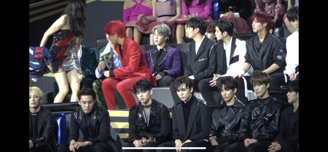 선미와 청하가 앉아있던 자리 옆으로 방탄멤버들이 하나둘 앉았고 좀 뒤에 들어온 멤버들옆에 남는 자리가 없자 앞으로 앉은 뷔를 보며 눈치를 살피던 선미가 태형이를 방탄 멤버들과 앉을 수 있게 청하랑 자리에서 일어나 뒤쪽으로 가라고 말을 건네준것 선미갓