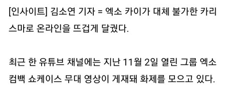 `미친 카리스마`로 입소문 타 조회수 폭발하고 있는 엑소 카이 `템포` 직캠