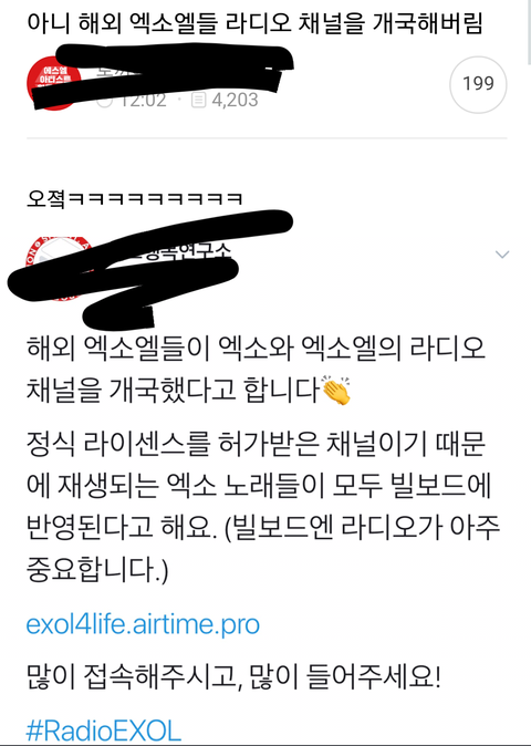 해외 엑소팬들이 빌보드 진입에 중요한 라디오점수 반영을 위해 미국내 라디오국을 자체적으로 신설했다고함 ㄷㄷㄷㄷㄷ