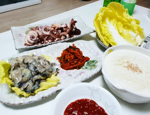 생굴회,데친주꾸미,콩국수