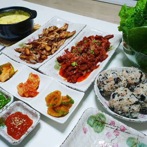 닭목살 소금,양념구이,달걀찜,참치주먹밥