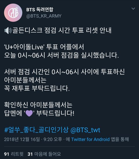 ⚠⚠ 골디 점검 시간 투표 리셋 안내 ⚠⚠