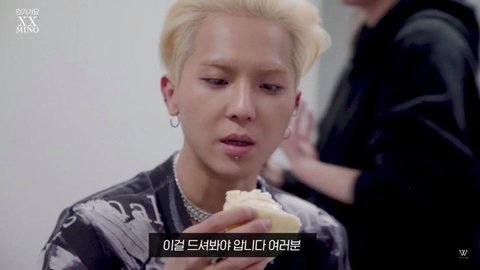 데뷔해서 인기가요 샌드위치 먹어보라는 송민호.