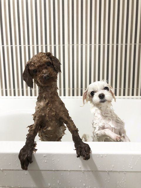둥이와 헐크 목욕시간, 혼자서 두마리 씻기는 일은 너무 힘든데 예뻐서 찍어봤어요 ㅎㅎ