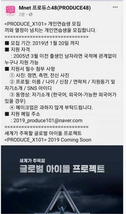 프듀 시즌4 시작과 관련하여 엠넷에 올라온 공지사항