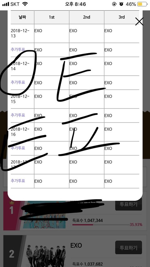 진짜 투표!!! 하면 엑소엘인데 제발 좀