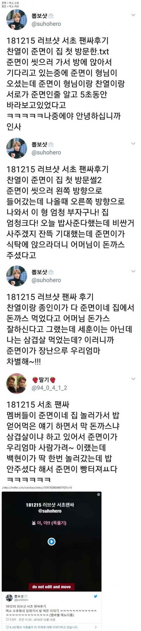 수호 본가에 간 엑소멤버들 썰