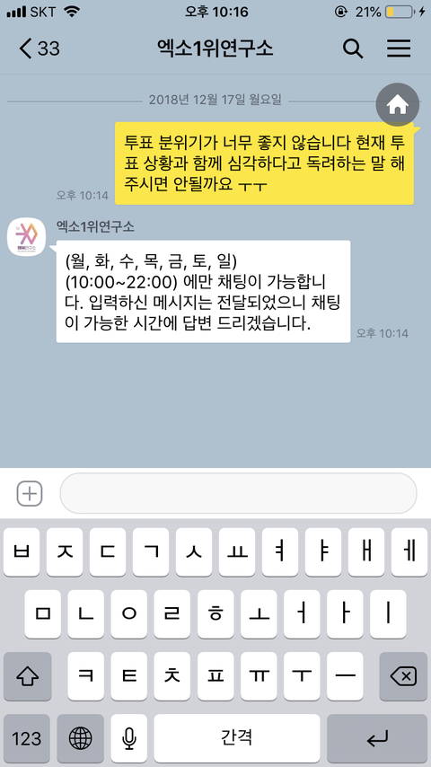 ㅇㅎㅇ 옾챗 보내고 옴