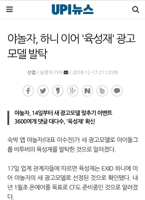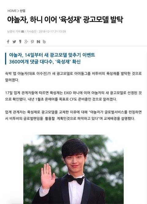 야놀자 새로운 광고모델 발탁