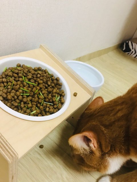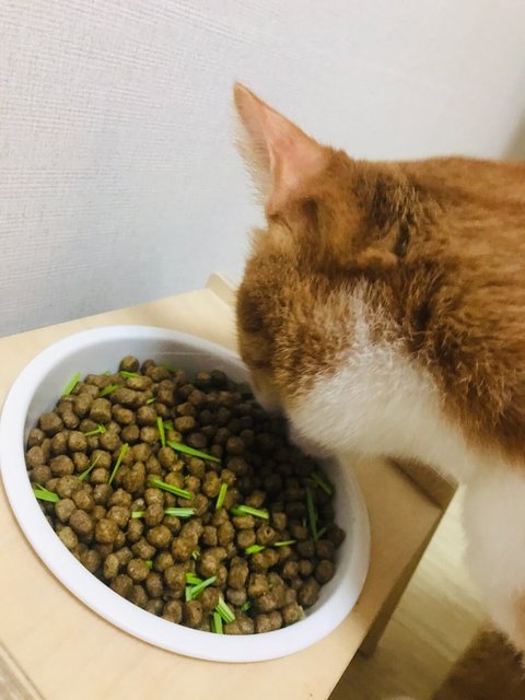 캣그라스를 밥 위에 뿌려주니 맛있게 챱챱!