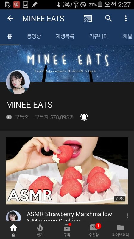ASMR 영상 올리시는 분인데 잡음 없이 깔끔하고 편집도 지루하지 않아! 무엇보다 NG컷 모음 영상은 계속 보게 된다... 초콜릿 자르는 소리도 너무 좋고 베이킹 영상도 색감 너무 예뻐!